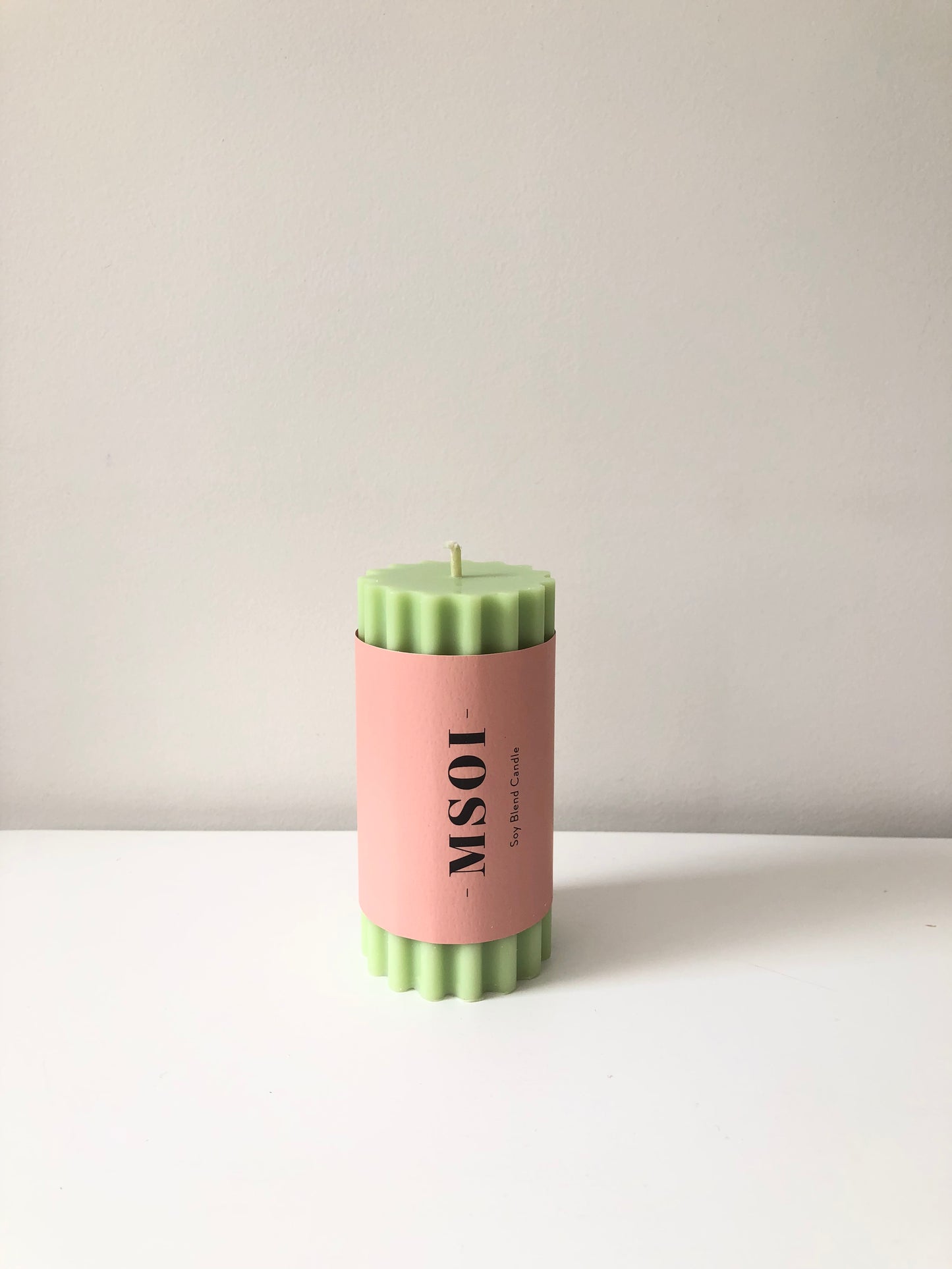 Ribbed Column Candle Pistachio 15x6cm